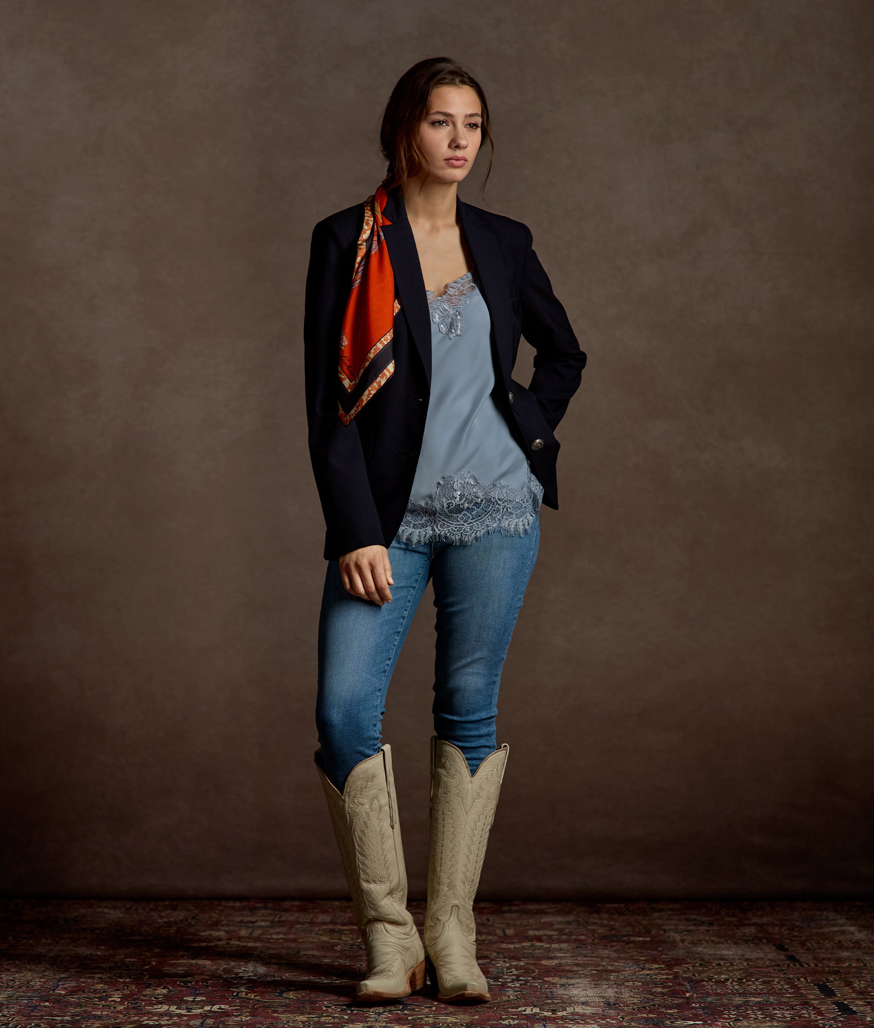 Crafted from luxurious silk. the Amelia Coco Bias Cami features a subtle sheen and a flattering fit. A refined floral design and delicate lace detailing offer a look of elegance. Perfect for transitioning from daytime chic to evening allure.