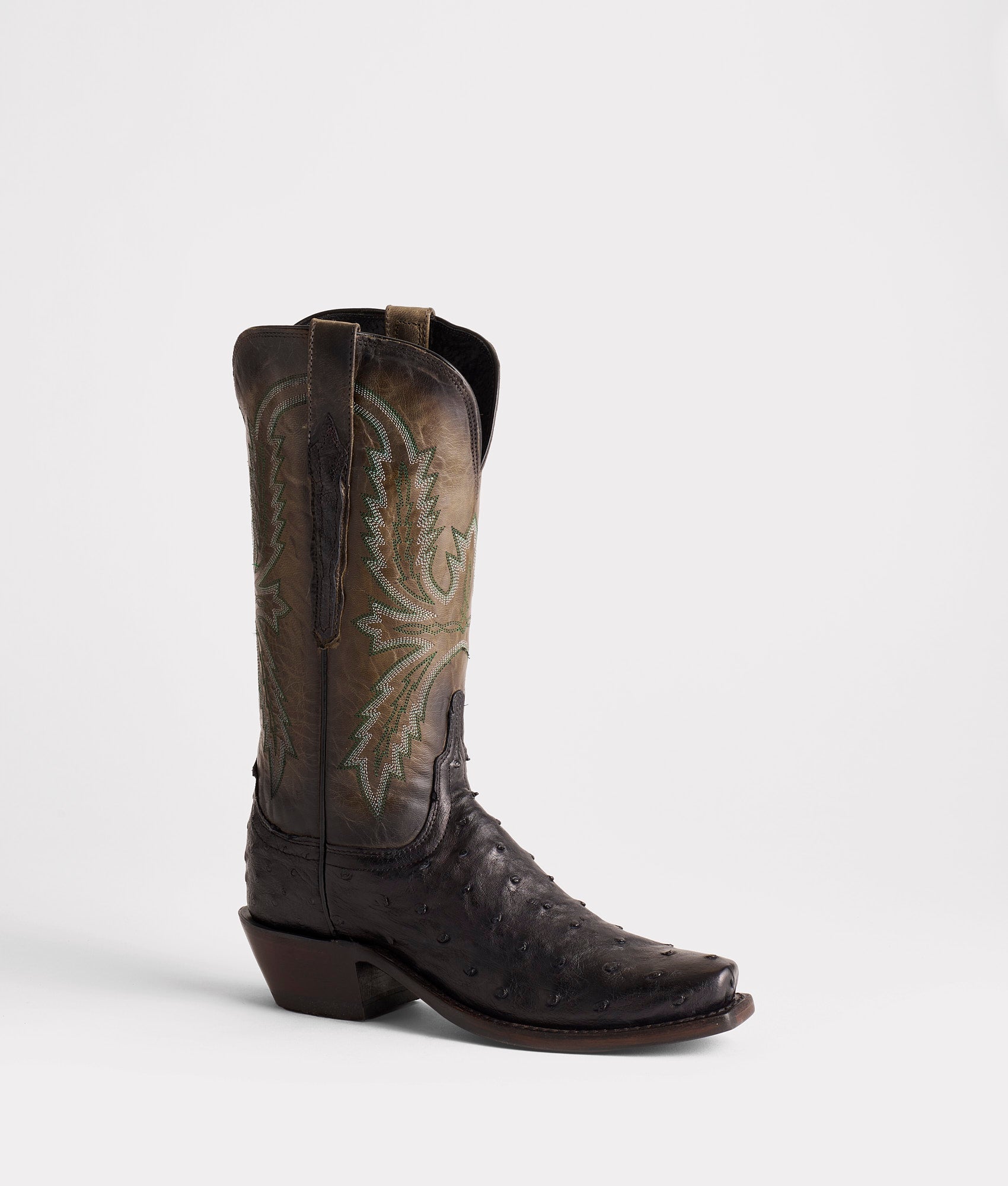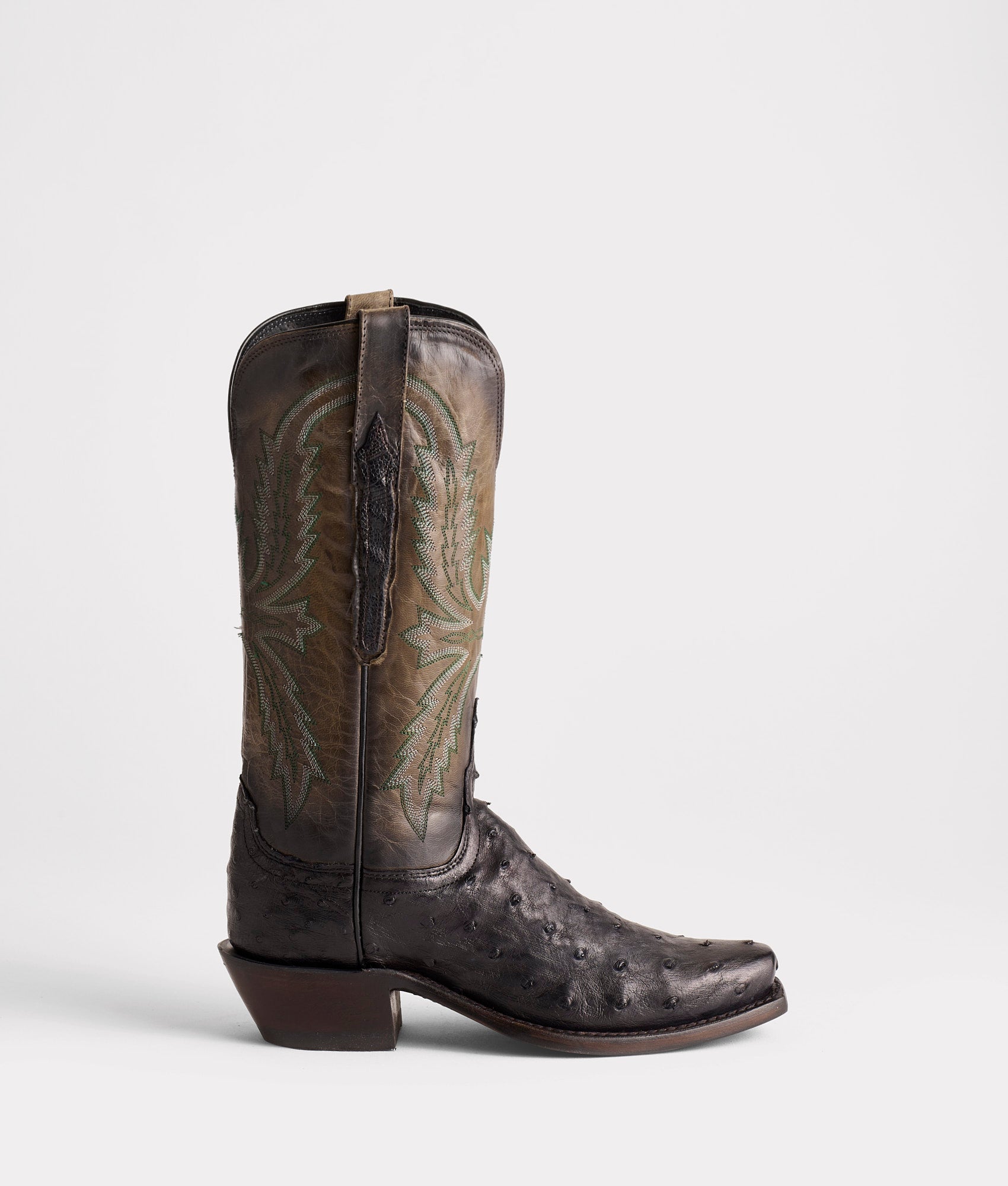 Saddle up your horse – the Josephine is cowgirl and life ready. Crafted from supple Full Quill ostrich leather and paired with a contrasting Celeste stitch pattern. this Western style looks best with your passed down stirrups or your favorite pair of jeans. Handmade in Texas.
