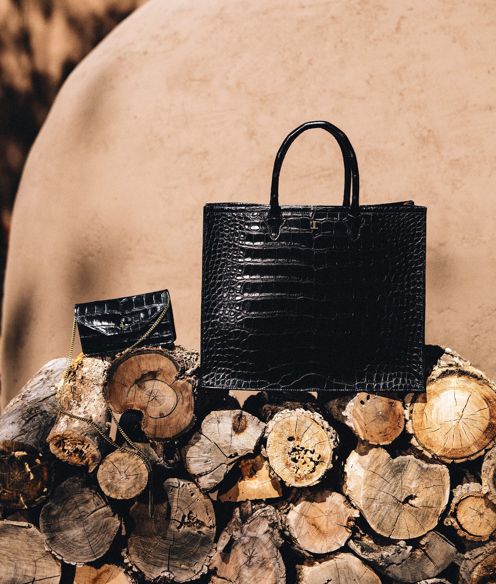 The Large Alice Exotic Book Tote is an edifice of power in glazed American Alligator. Its lacquered surface catches light like liquid black glass. radiating precision and intent. A discreet gold mirrored-L punctuates the expanse. less ornament than signature. Pair it with sharp tailoring or denim and boots.