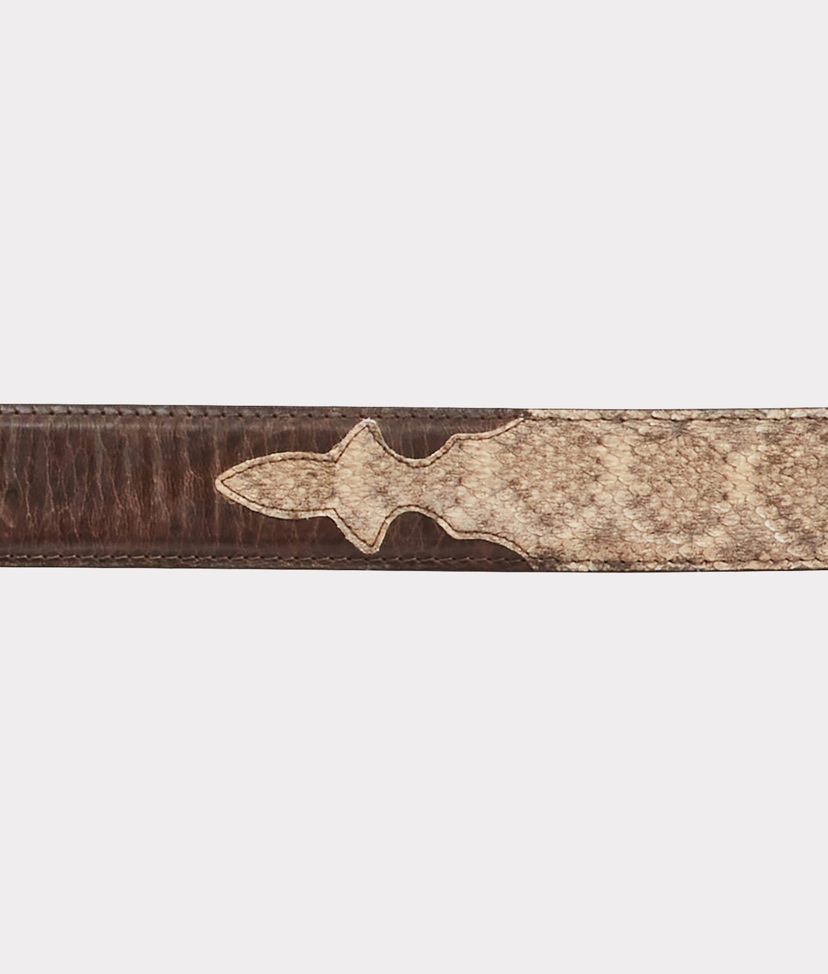The Limited Edition Rattler Belt is fashioned from Western Diamondback Rattlesnake and Goat leather. Strikingly beautiful. this piece is coupled with a sterling silver buckle with our signature mirrored-L logo.
