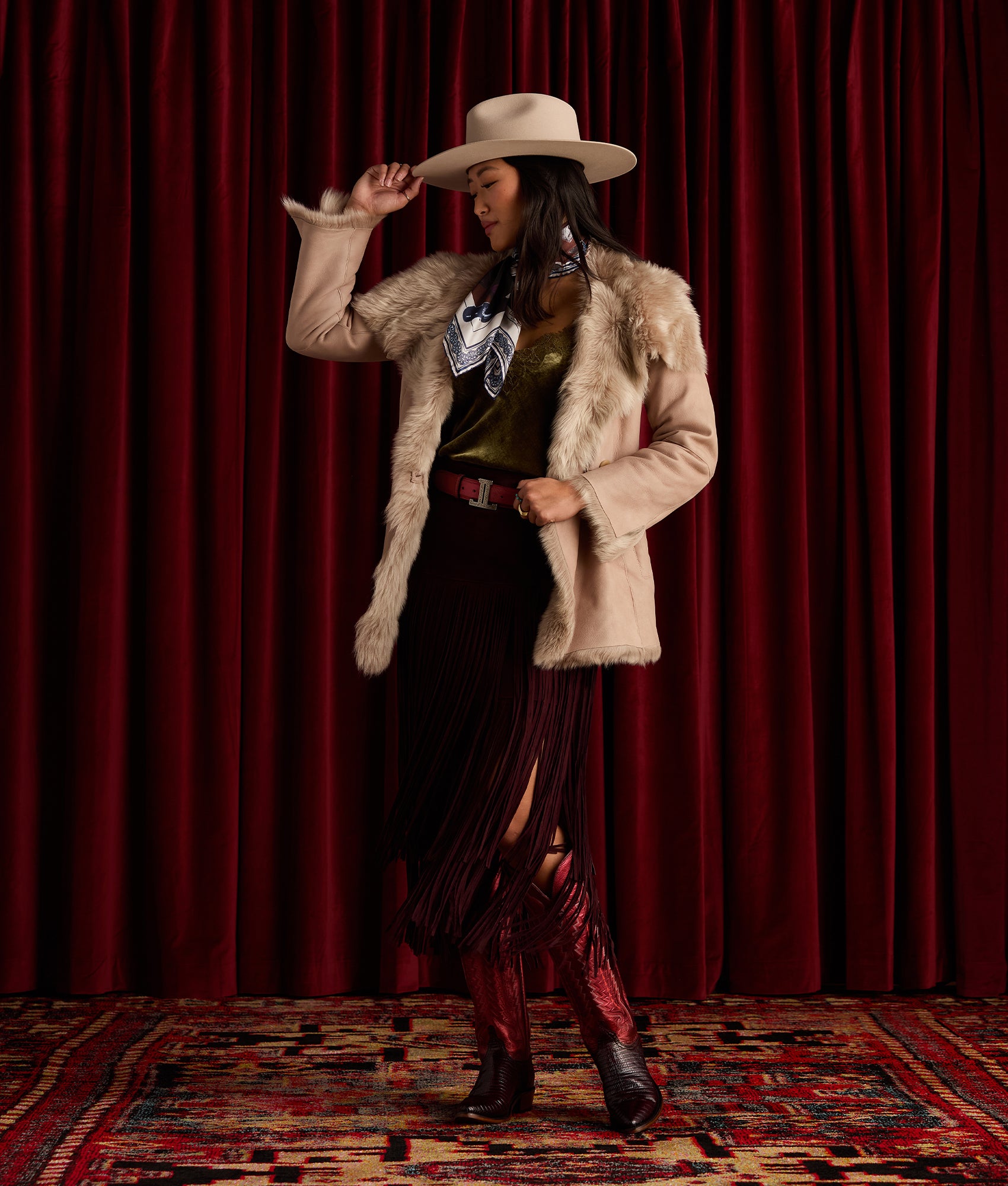 The Rhiannon Fringe Skirt moves with a free-spirited rhythm. its layers of delicate fringe capturing every step with effortless flow. Crafted for those who dare to stand out. this skirt blends bohemian flair with a touch of Western edge.