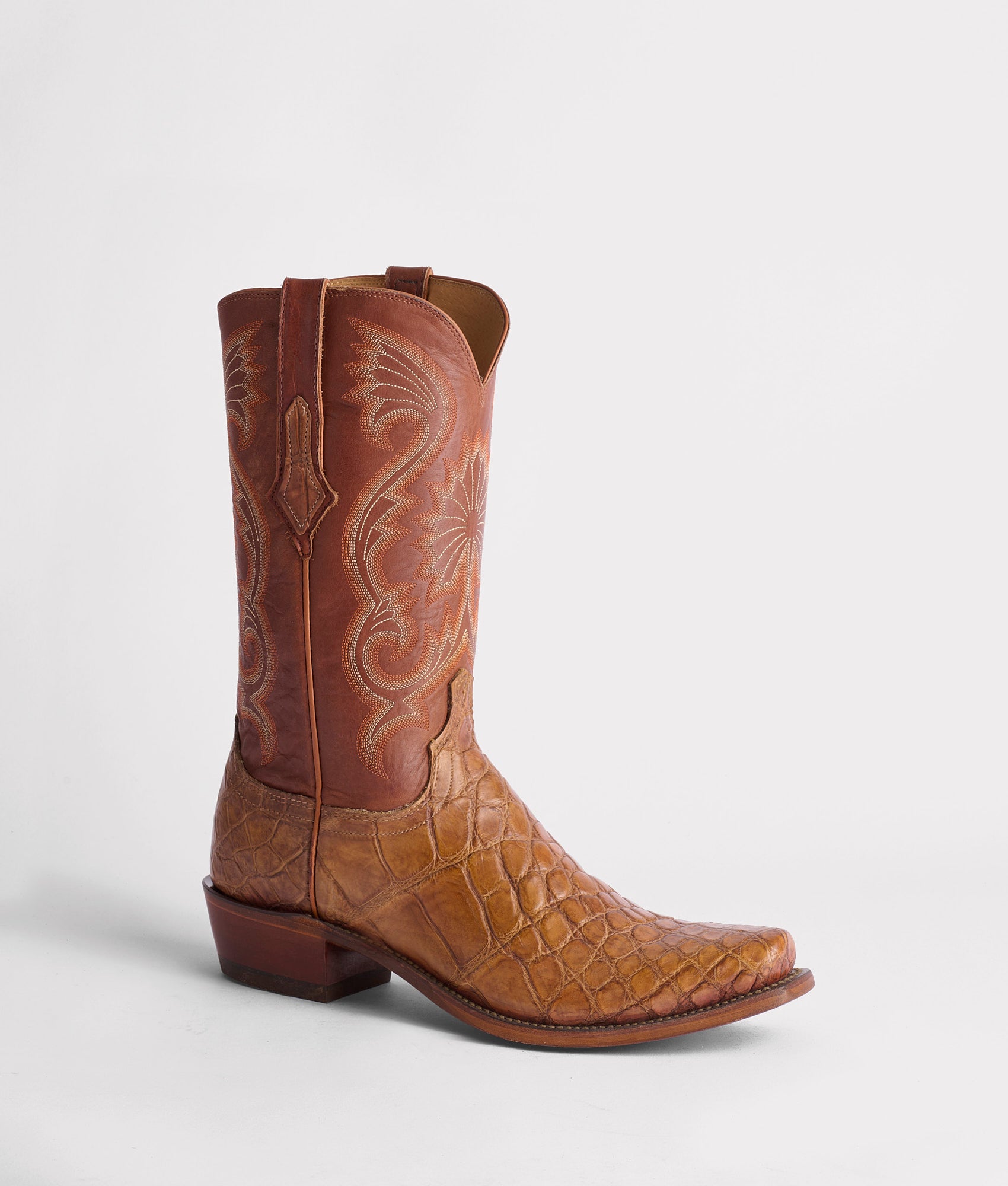 Fashioned from wild-caught Giant Alligator leather. this cowboy silhouette resembles the Rio Grande Valley and its mark left on the West – untamed. unforgiving. and unapologetic. The Rio will leave a Lone Star State-sized footprint on anyone who sports this rugged style. Handmade in Texas.