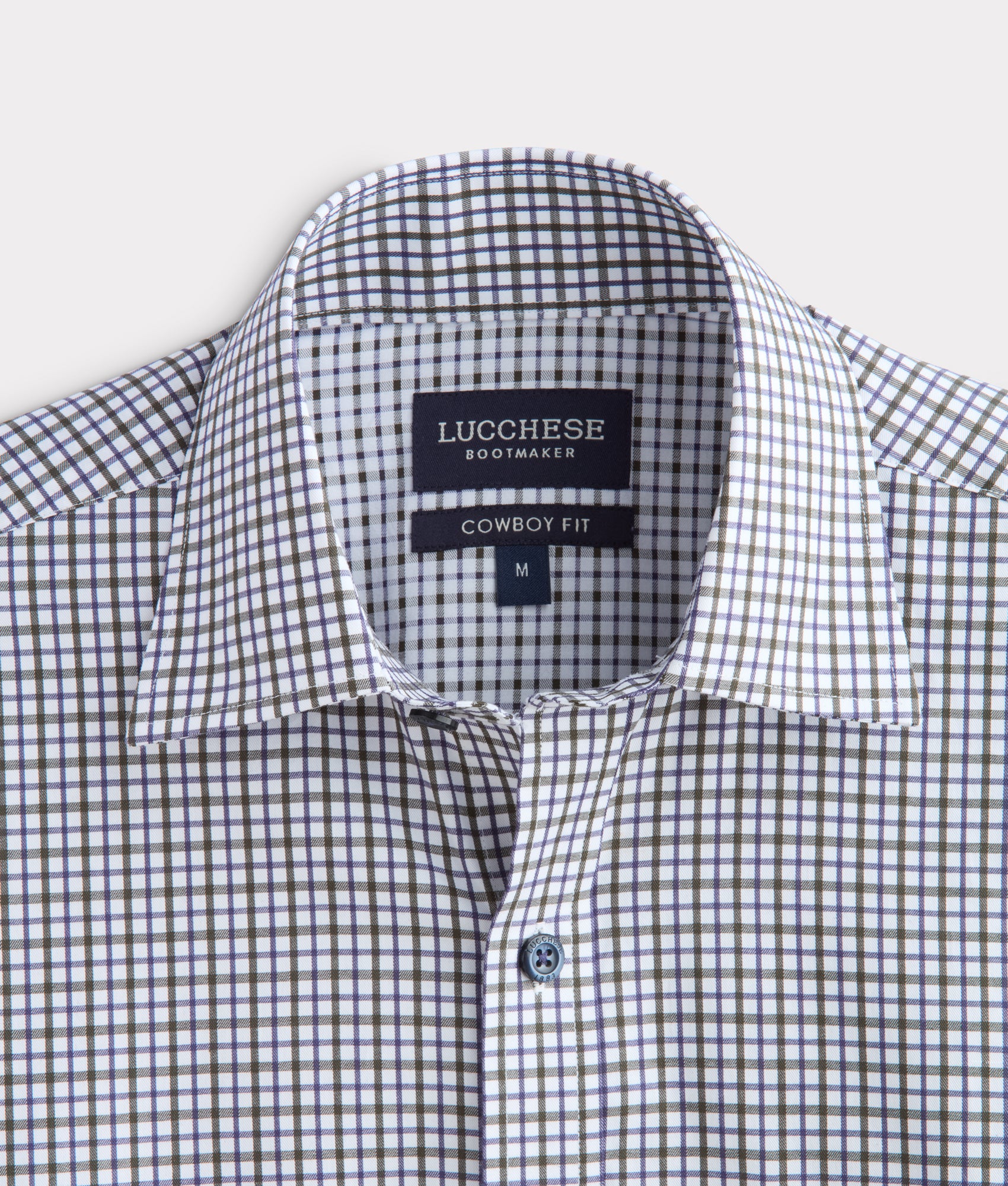 Named for the Texas city where Lucchese originated. the San Antonio is a timeless button-up designed with one chest pocket and barrel cuffs. Crafted for versatility. it blends heritage with refinement. The cowboy fit is designed for a traditional Western build. It features a roomy chest. broad shoulders. and a longer torso for confident tucking. Extended sleeve length and a fuller bicep cut allow for ease of motion.