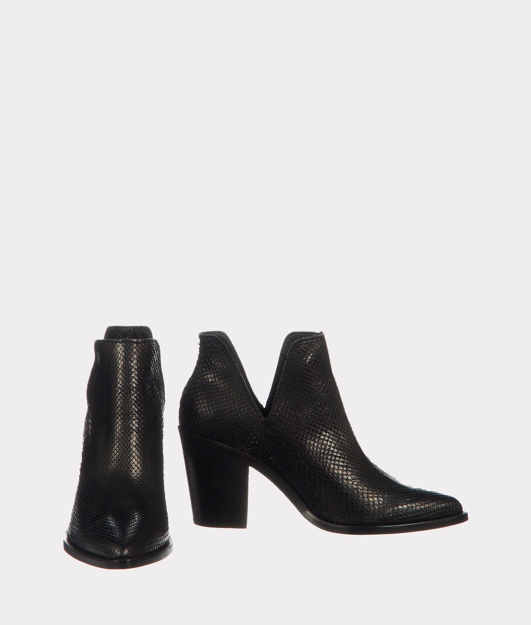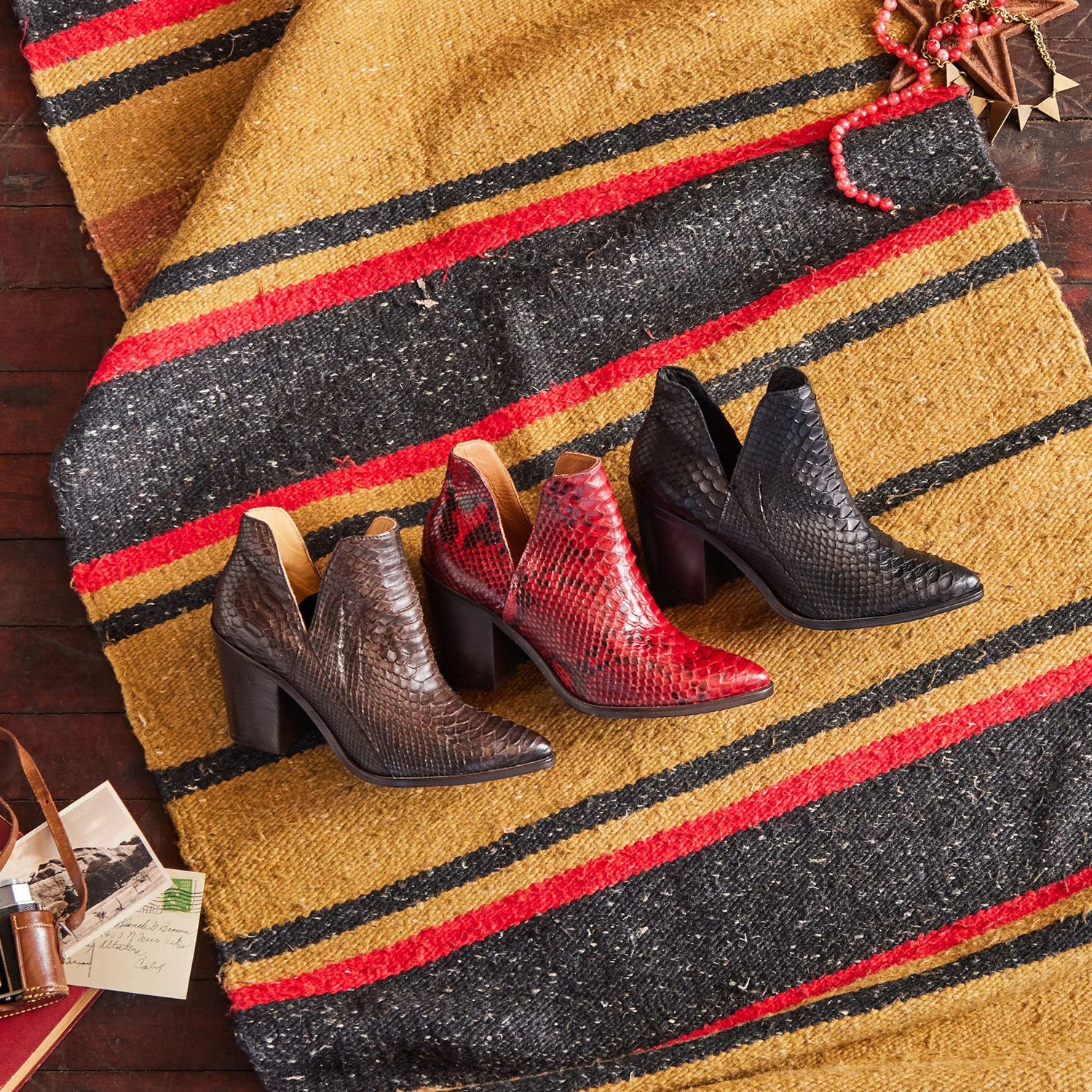 Striking describes Alma Exotic in so many ways. Handcrafted from premium python. this fashion bootie has a 3ΒΌ-inch heel and deep-V construction on both sides. In unexpected colors. it’s a beautiful balance of contemporary styling and Western panache.