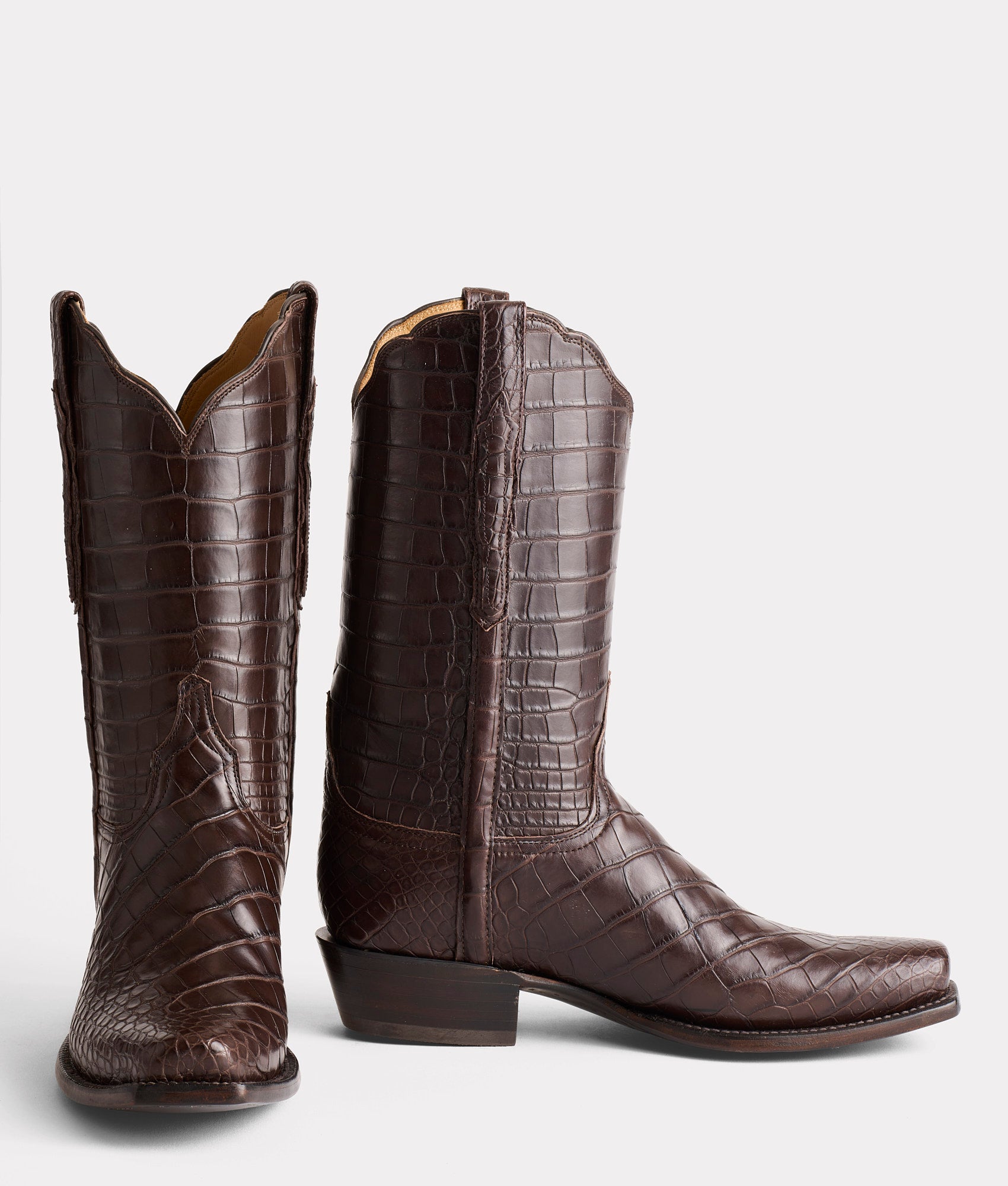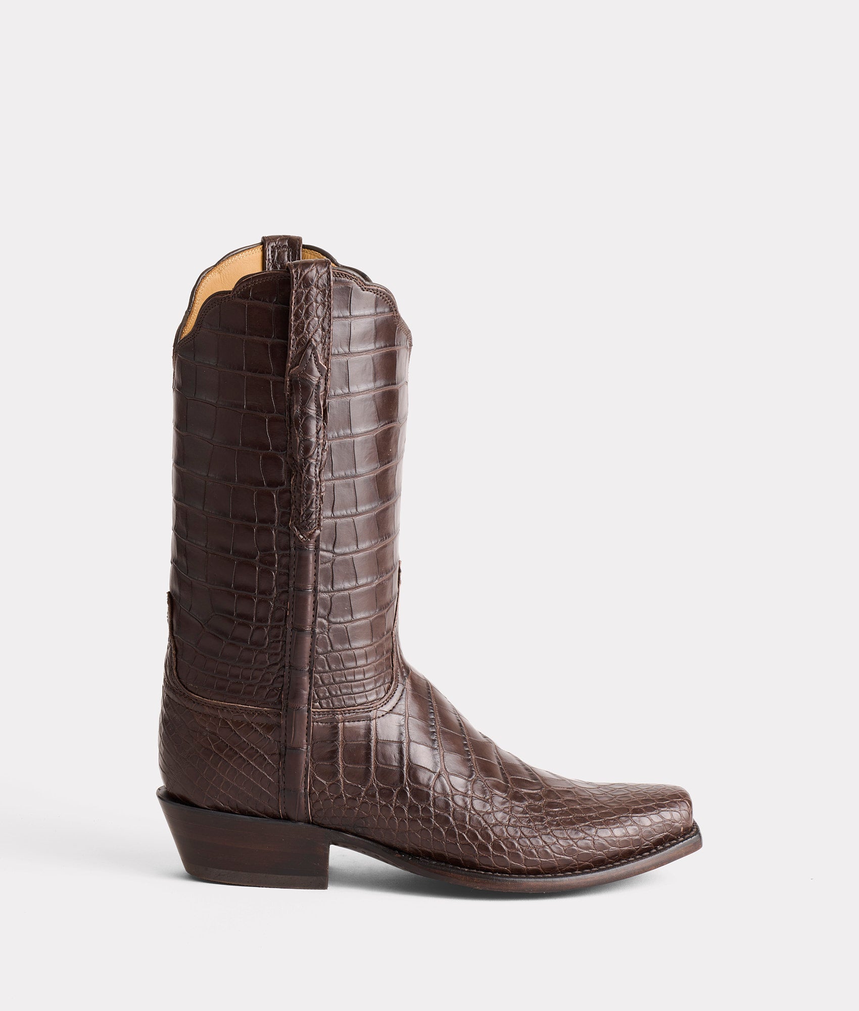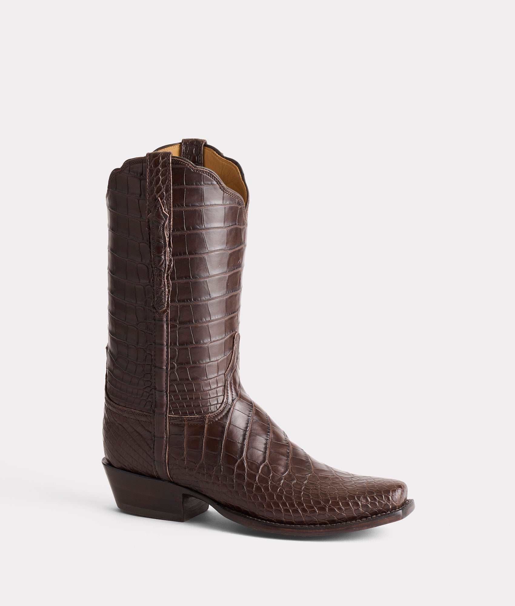 Lucchese Bootmaker’s Baron stands as a paragon of luxury footwear. meticulously handcrafted from the finest American alligator leather. This premium material undergoes a rigorous tanning process. encompassing nearly 100 individual steps. ensuring both its exceptional quality and durability. Tanned entirely in the USA. each piece of leather is center cut. chosen for its unparalleled quality and texture. These full top and bottom alligator boots are painstakingly assembled by Lucchese’s most skilled artisans. transforming them into more than just footwear. but a form of wearable art. Designed for the most discerning clients. the Baron Boot is an heirloom-quality masterpiece. embodying the pinnacle of American craftsmanship and elegance.