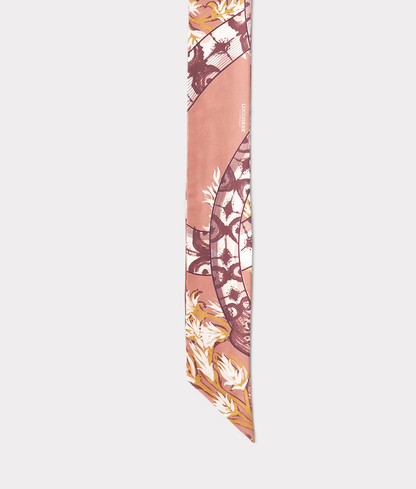 The Diamondback Twilly showcases a geometric snake design through silk. This versatile piece features intricate patterns that evoke a sense of mystery and allure. making it perfect for adding a bold touch to any outfit. Whether tied around your neck. wrapped around a bag. or styled in your hair. the Diamondback Twilly offers endless possibilities.