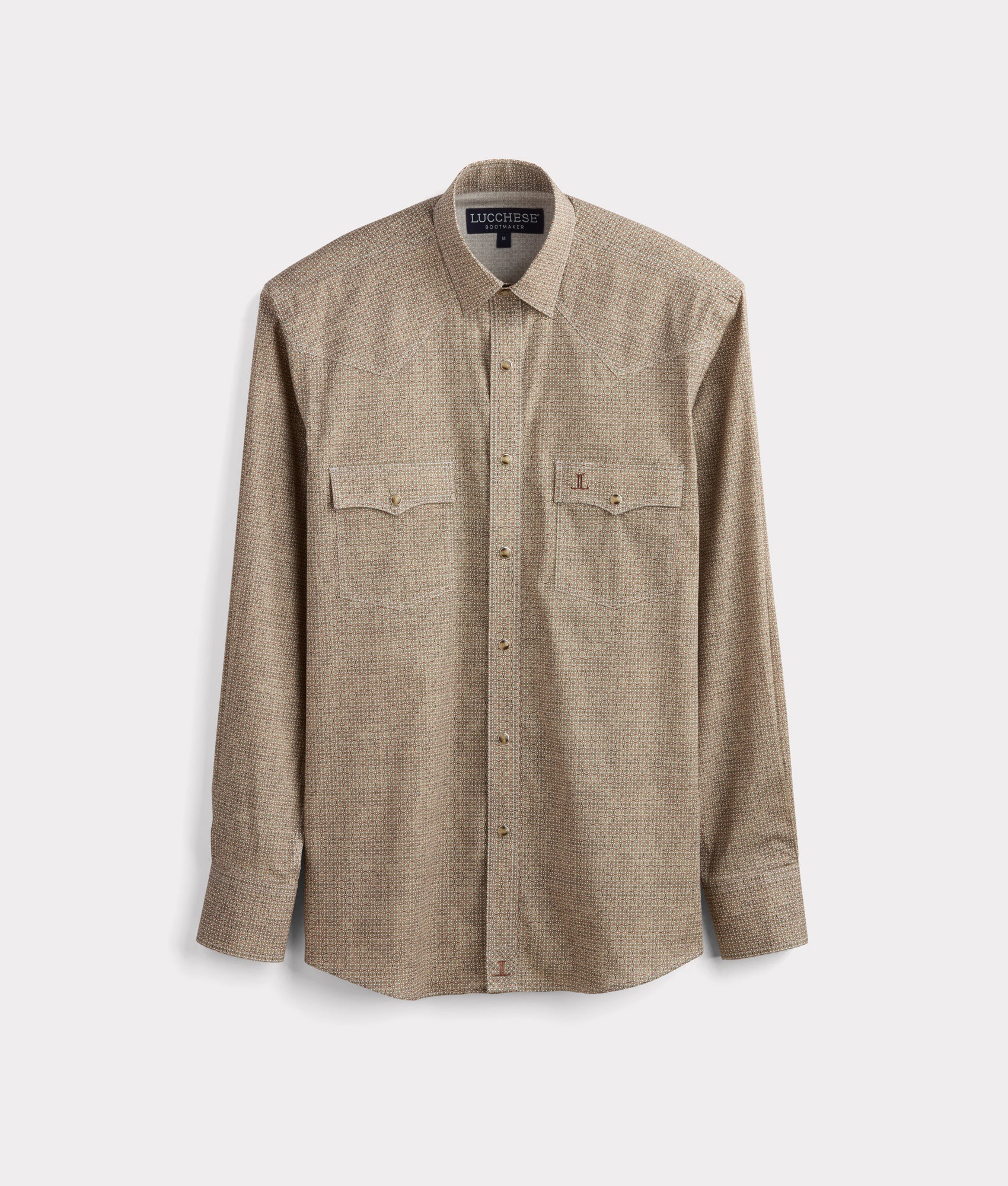 Named for the Texas city where Lucchese’s renowned bootmaking factory resides. the El Paso blends Western utility with refined design. Defined by its snap-front closure. dual chest pockets. and barrel cuffs. it embodies the character of its namesake. The cowboy fit is designed for a traditional Western build. It features a roomy chest. broad shoulders. and a longer torso for confident tucking. Extended sleeve length and a fuller bicep cut allow for ease of motion.