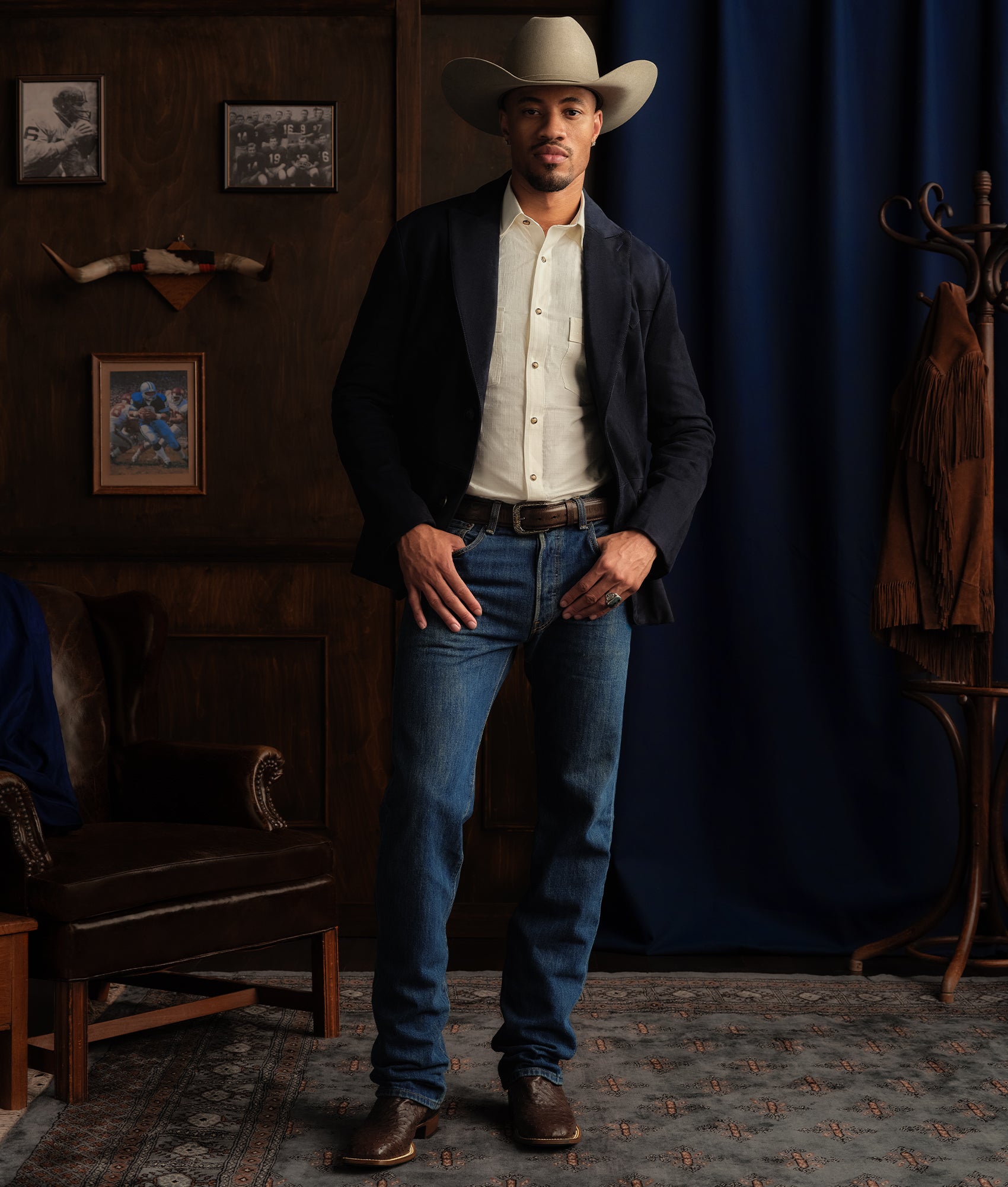 Jesse is a Mid-Rise Slim Straight jean that sits perfectly on the waist. It is slim through the?hip but?has room in the saddle for maximum stride. The leg is slightly tapered from the knee to the bottom opening. Each Jesse wash is cut from Turkish or Italian denim. Featuring our iconic toe medallion on the back pockets and the Mirrored-L logo on the coin pocket ?C everything points back to our legendary boots.