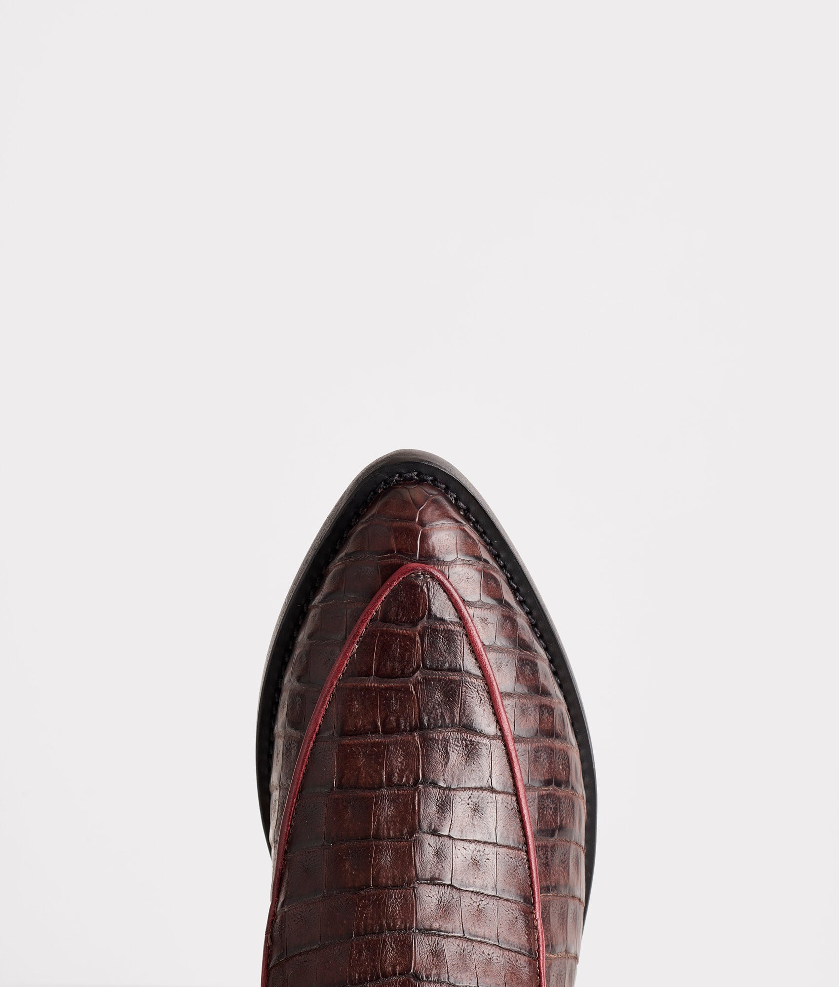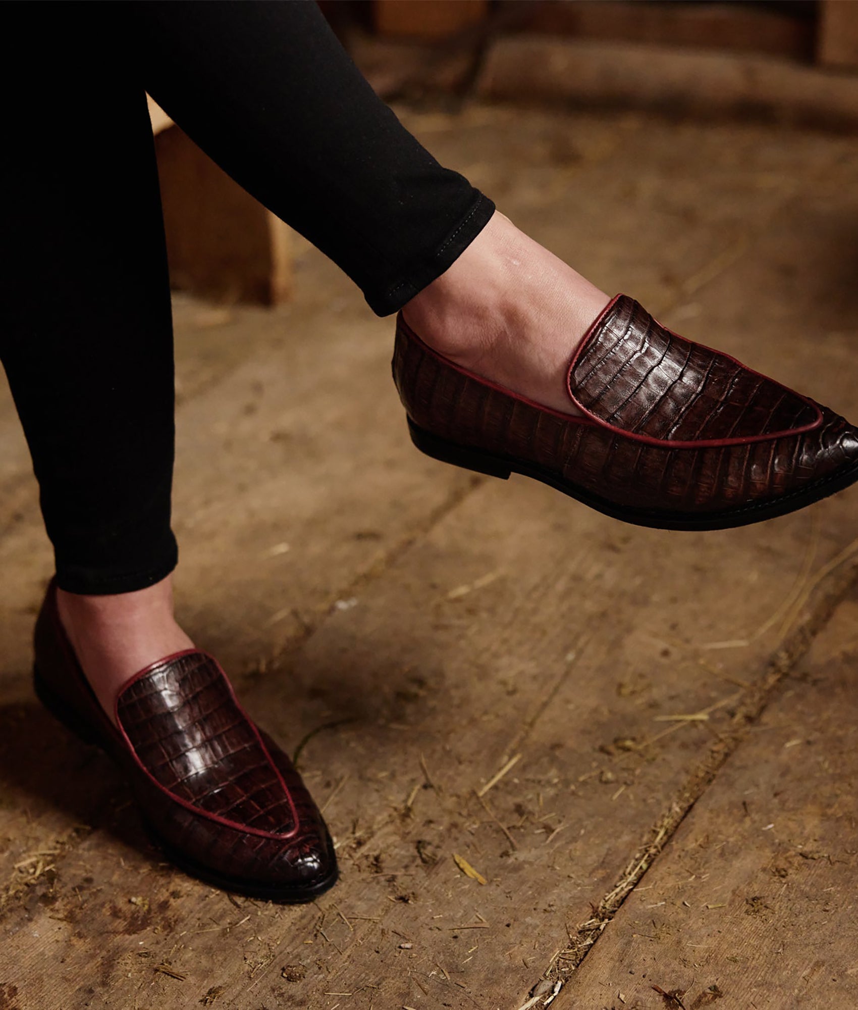 Karmen is a vintage-style loafer handmade from caiman leather. A Western look without the quarters. this shoe offers a seamless transition from saddle to city. Slip into Karmen after a long day in the pasture or before a quick trip to the store.