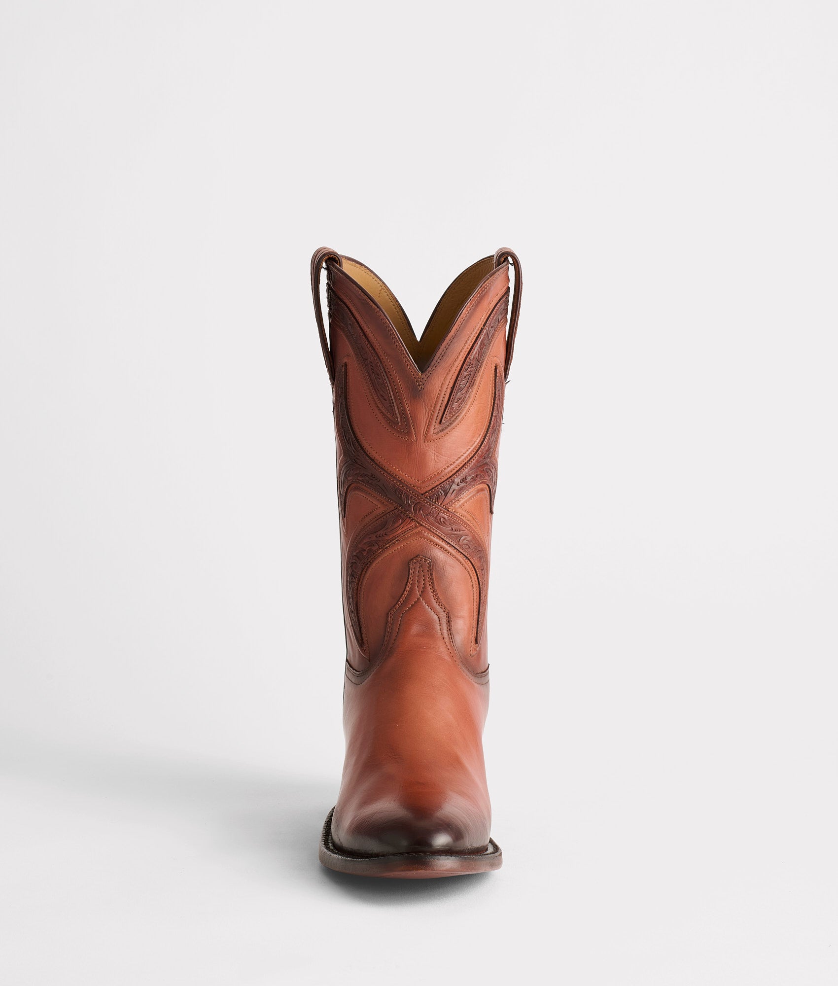 The Knox is a chic Western style riddled with stunning benchmade components – named and designed after the Kentucky bullion depository. Fort Knox. A burnished silhouette with hand-tooled details on the quarter and collar give the Knox the ultimate look of Western sophistication. Take the Knox out to dinner for two. Handmade in Texas.