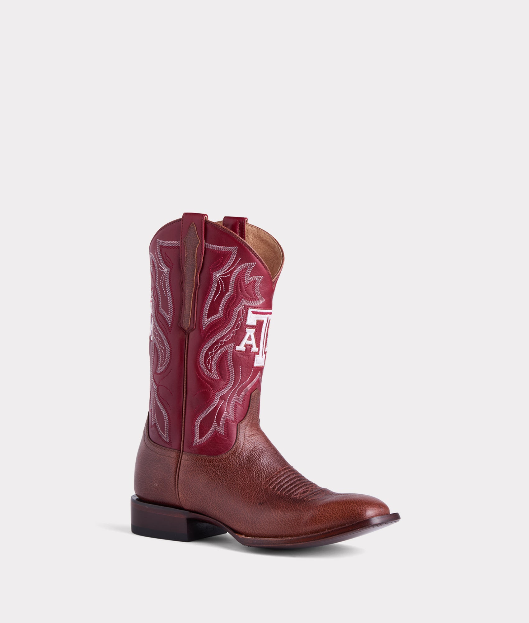 Lucchese’s Men’s 12th Man is a horseman boot that celebrates the unparalleled spirit and tradition of Texas A&M University. Inspired by the legendary Aggie fanbase. known as the 12th Man. these boots are crafted to embody the same grit. resilience. and pride that define the Aggie community. Each horseman silhouette is handcrafted from premium full-grain cowhide leather. chosen for its durability and texture. The Block TAM logo sits in the center of the boot’s quarter as a tribute to the fans who stand tall with the 12th Man. Every step taken is a step deeper into tradition and victory.