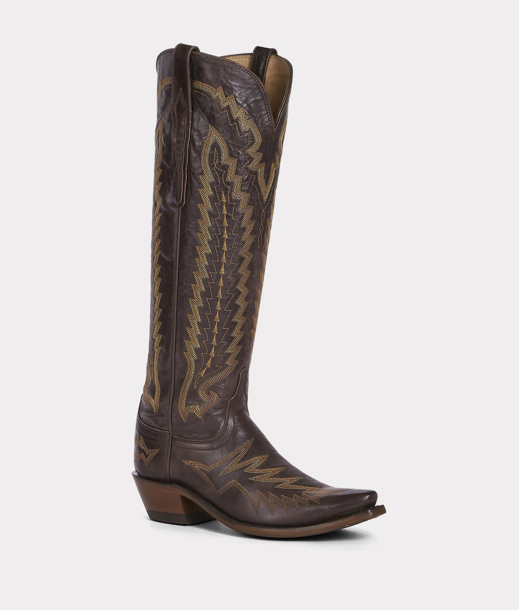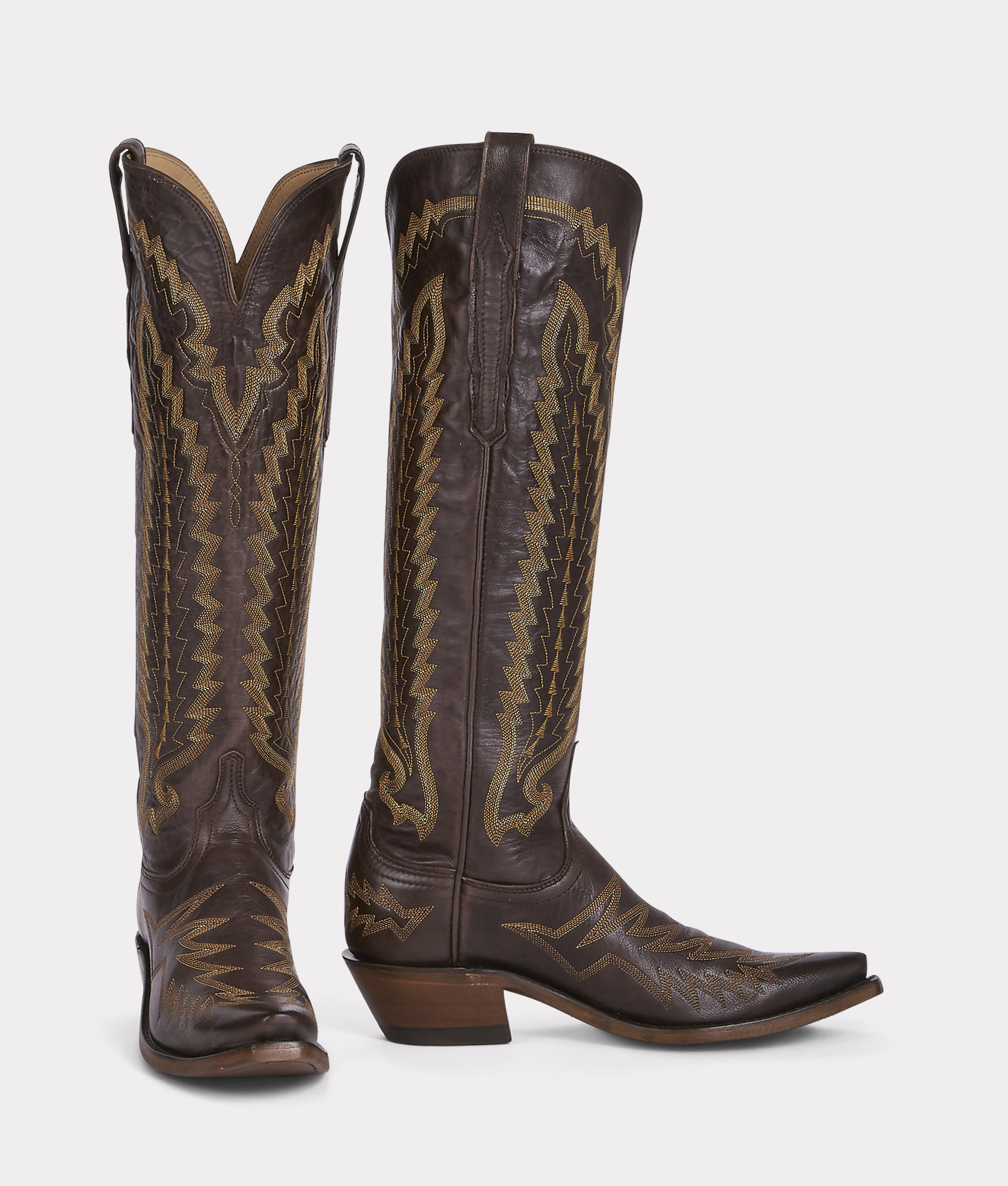 Our No. 1 bestselling boot for women. Priscilla walks an elegant line between timeless classic and cowgirl chic. The vintage-inspired Tioga stitch pattern harks back to yesteryear. but Priscilla is a boot built for today. This knee-skimming. pull-on silhouette handcrafted from Vero Goat?leather deserves the spotlight under dresses and over jeans. Handmade in Texas.