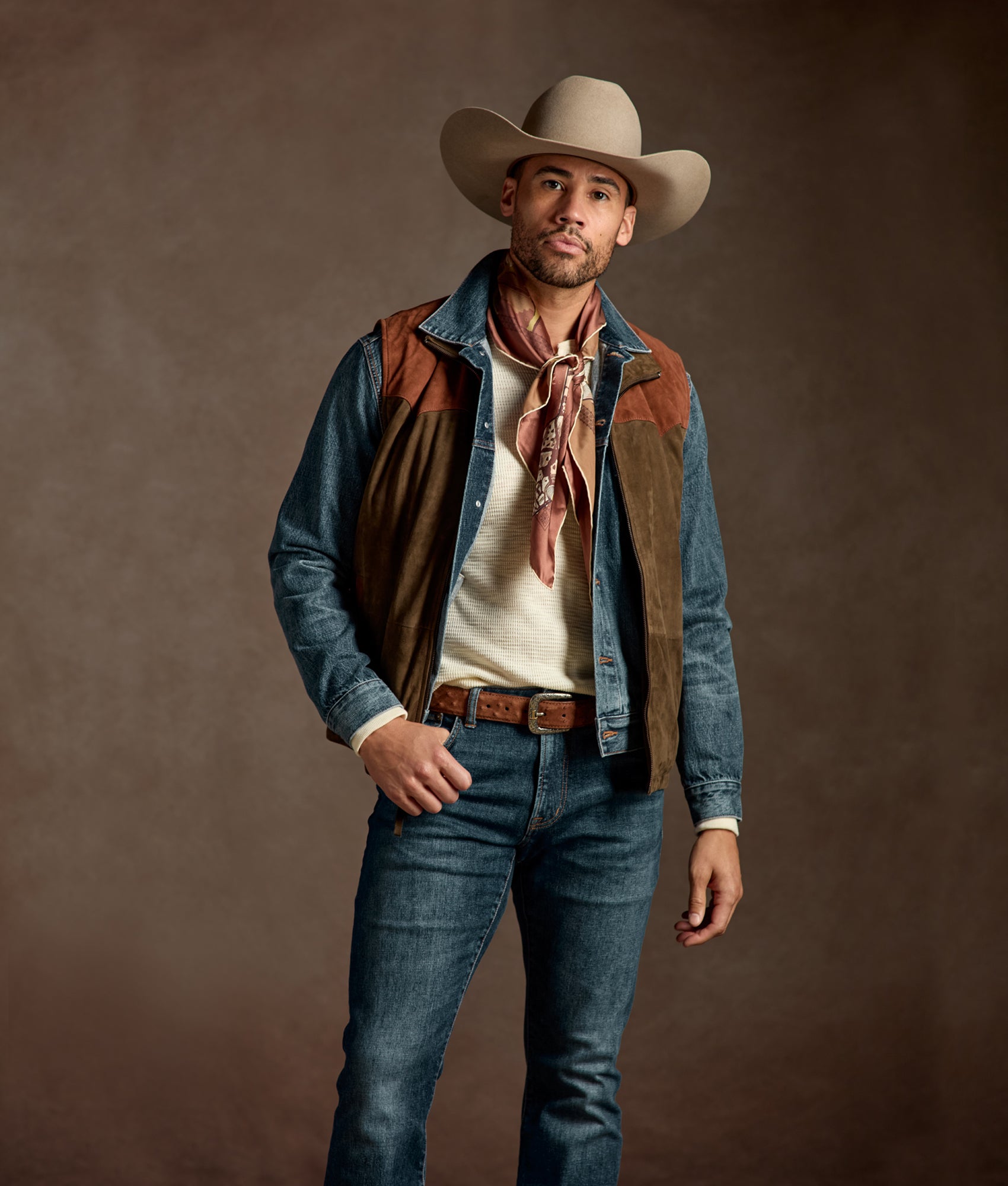 The Rit Two-Tone Vest is a tribute to the untamed West. crafted from rich. genuine leather in shades of deep brown and wild green that echo the desert’s raw beauty. With its striking Western yoke and functional side pockets. it blends bold style with rugged practicality. designed to withstand any journey.