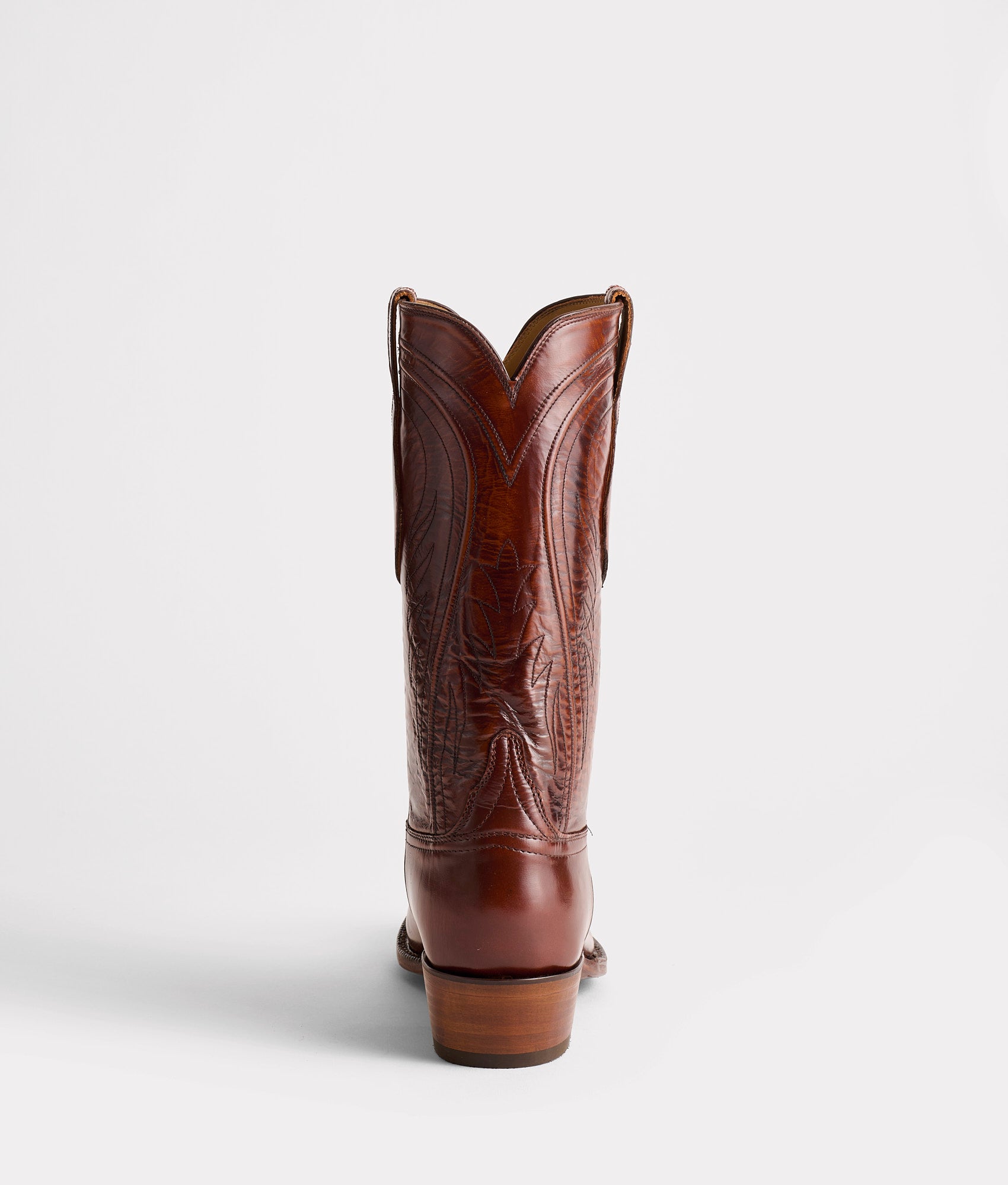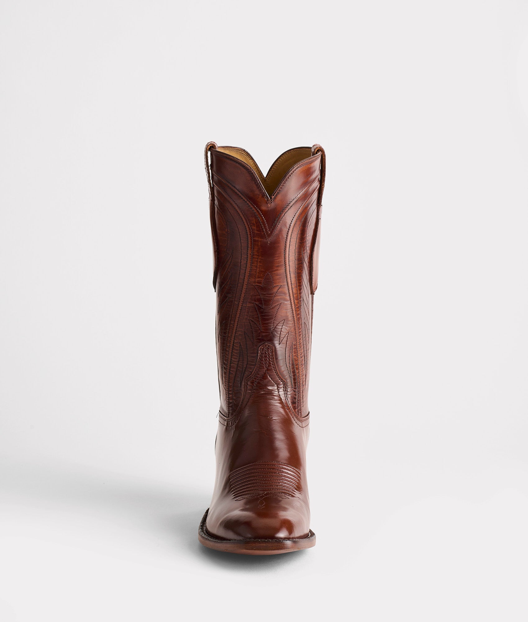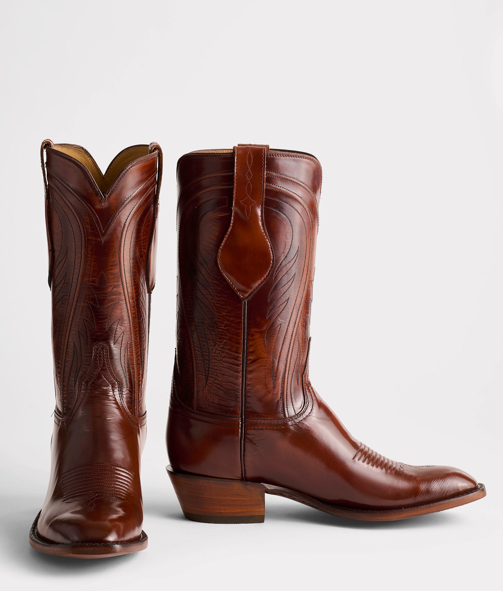Part of the Chris Stapleton collection. the San Antonio harks back to yesteryear. Reminiscent of vintage Lucchese construction and design. this iconic Western Santini goat silhouette is tried-and-true and inspired by Lucchese’s original San Antonio factory. A classic Seville cord pattern accompanied by traditional Mule Ear pull straps to achieve the look of ‘quintessential Stapleton’. Handmade in Texas.