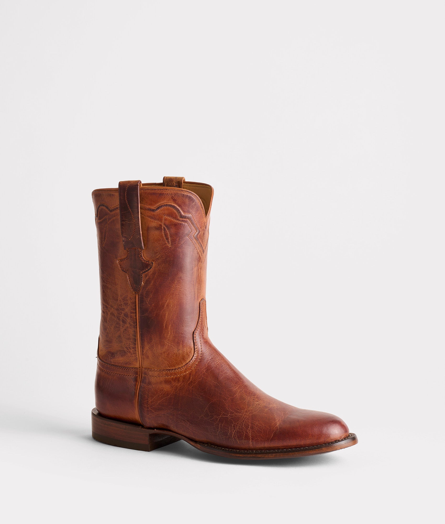 The Tanner pays homage to one of the oldest and most practical cowboy boot styles. The roper silhouette was built for utility as much as for style for the cattleman. Its low heel was designed for maneuverability on the ground and quick. effortless dismounts from the saddle. making it a trusted companion for cowboys in days of old. Now. in the 21st century. the roper silhouette serves as the perfect transition for someone new to cowboy boots. Its discreet design and lower heel make it an easy step from a dress shoe to a boot. Handmade in Texas.?