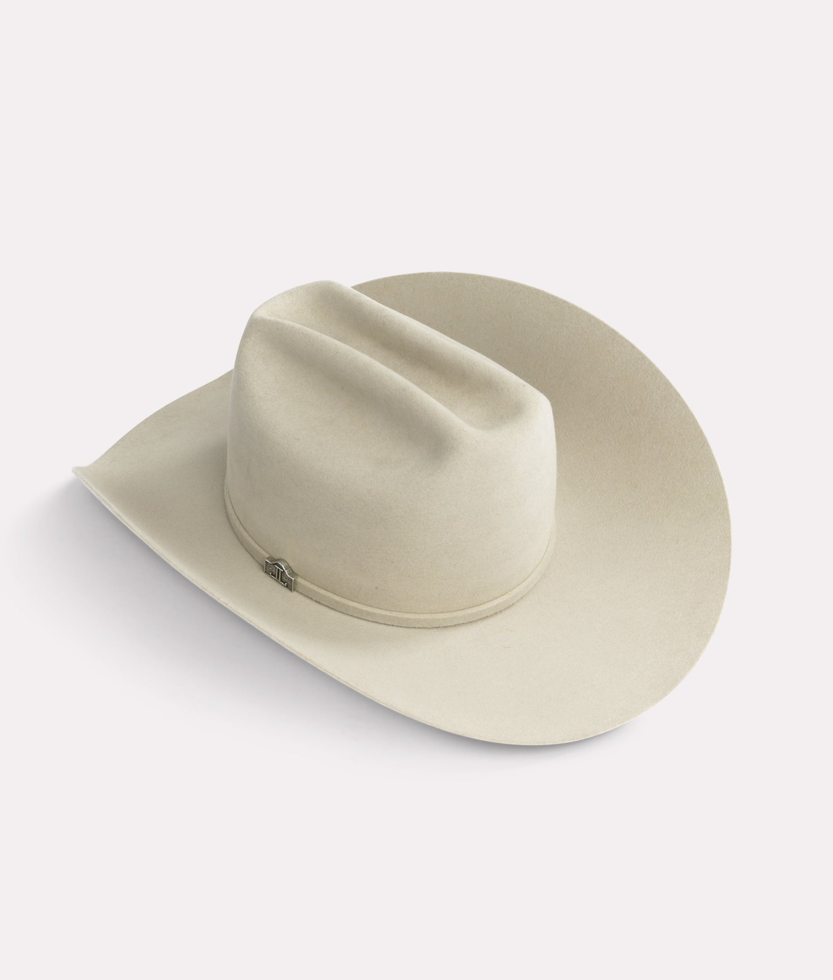 Part of our exclusive Lucchese Western hat collection. the Alamo is a hat that pays homage to the Lone Star State – inspired by the city where Lucchese Bootmaker was founded in 1883 and named after the historical landmark in Texas. The Alamo is 100% custom made and hand-shaped from a blend of the finest beaver nutria furs. A 5 ? tapered crown with a slightly modified cattleman’s crease and a 4 ? brim achieve a Western look. A self-band made from its own body are attached with a handmade hat pin styled in the shape of the Alamo with the Lucchese mirrored-L 1883 logo inside the outline. Distressed to give an aged appearance. Handmade in Texas.