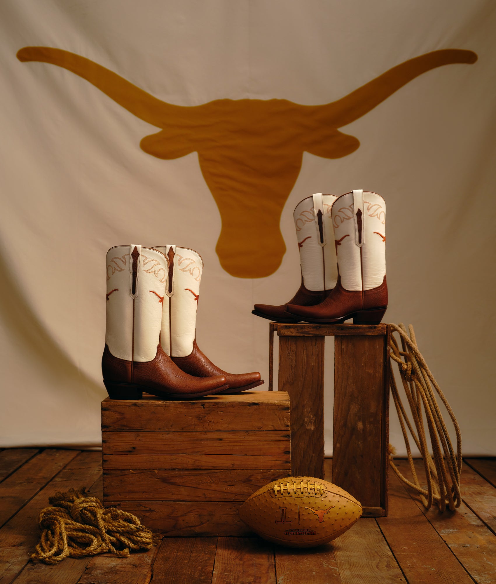Lucchese’s Women’s 40 Acres is a tribute to the storied grounds of the University of Texas at Austin. famously known for its sprawling 40-acre campus. This boot is more than just footwear – it’s a homage to a legacy of excellence. tradition. and Longhorn pride. Each western boot is crafted from premium full-grain cowhide leather. known for its rugged durability and visual texture. The Longhorn logo is fully-stitched at the center of the quarter symbolizing the unity and pride of the Longhorn family. Each step in the 40 Acres serves as a reminder of the rich history and the legendary spirit of what it means to be a Texas Longhorn. Embrace the legacy and carry the 40 Acres with you onto your next piece of ground.